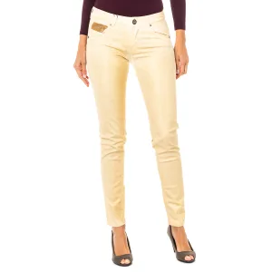Stretchbroek met glanzend effect en dun gesneden zomen HWT012 vrouw