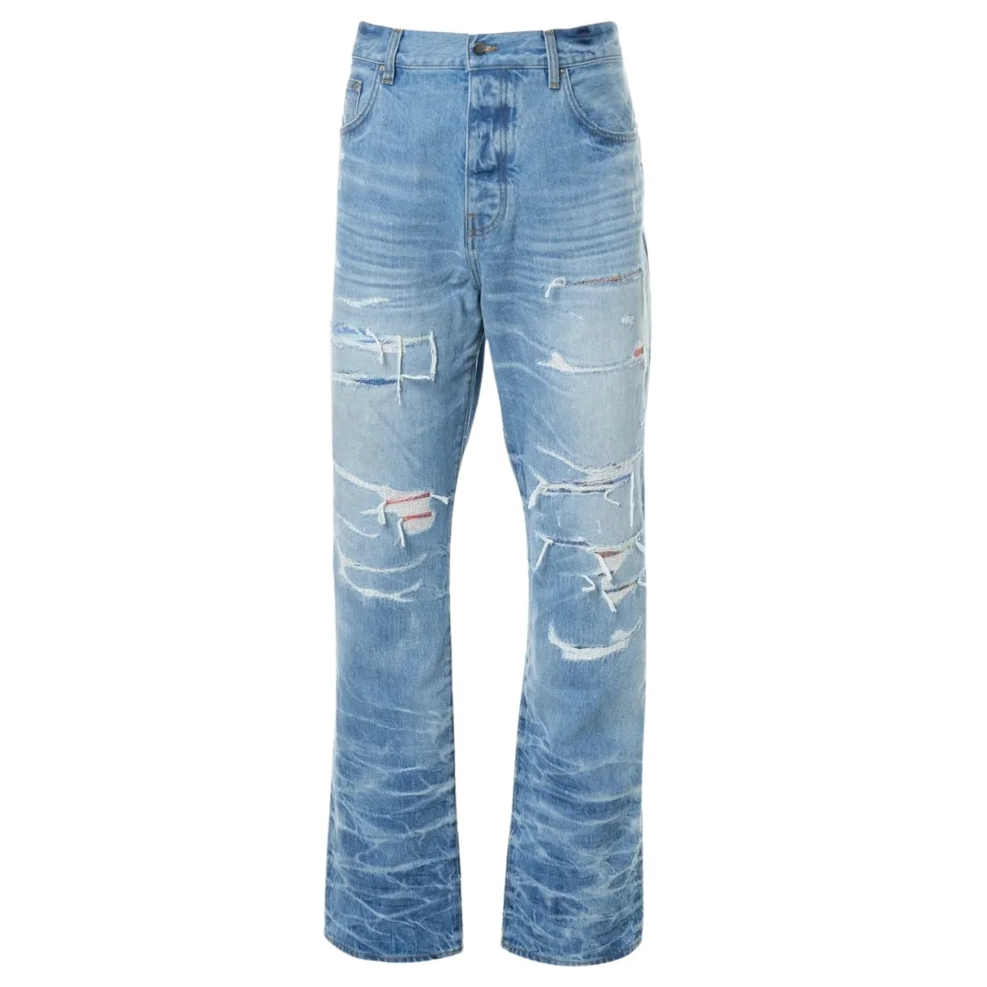 Amiri Aloha Patch Straight Fit vervaagde indigoblauwe denimjeans