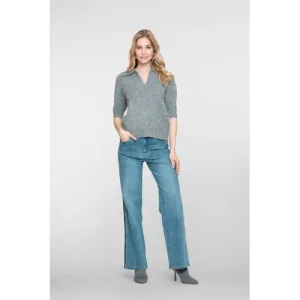 Geisha high waist wide leg jeans medium blue denim