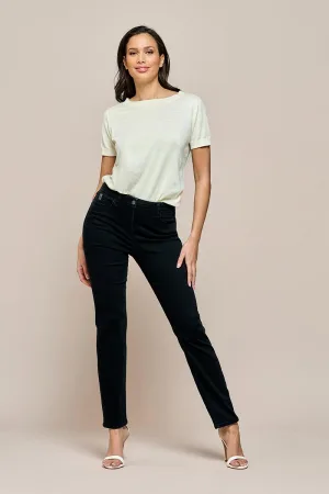 Exte Dames Zwarte Katoen Stretch Middelhoog Taille Flared Denim Jeans