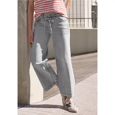 Street One Dames Mid Waist jeans met Wide Legs en strepen in Blauw