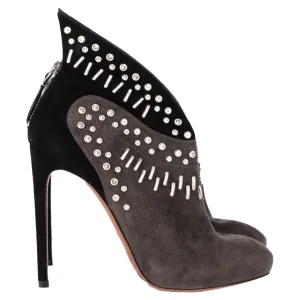 Alaïa Gelakte Versierde Hiel Enkellaarsjes in Grijs en Zwart Suède