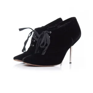 Lanvin fluwelen enkellaarsjes met metalen hak.