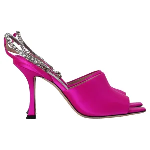 Jimmy Choo Saeda 90 Sandalen met Kristallen Ketting Versiering in Roze Satijn