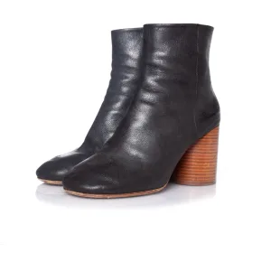 Maison Margiela Zwarte leren enkellaarsjes met ronde neus