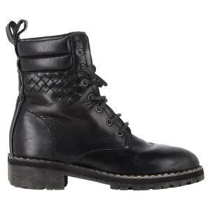 Bottega Veneta Eldfell Intrecciato gevechtslaarzen in zwart leer