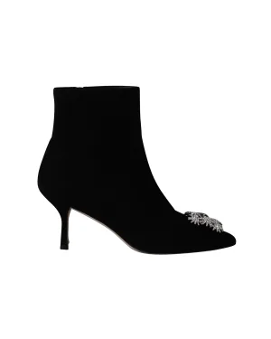 Stuart Weitzman Crystal Buckle Kera Enkellaarsjes in Zwart Suède