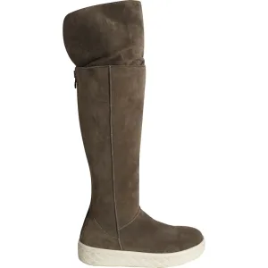 Moncler Knielange Leren Laarzen met Schapenwollen Voering in Grijs Suède