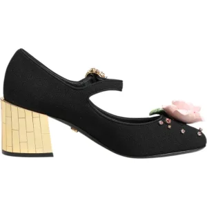 Dolce & Gabbana Zwarte Bloem Cristal Versierde Mary Jane Schoenen