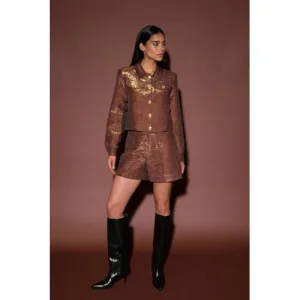 AMAYA Amsterdam wide leg regular waist casual short brons met lurex
