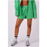 Moschino Heart Buttons Stretch Satin Shorts Red