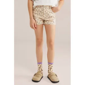 WE Fashion denim straight short met panterprint beige