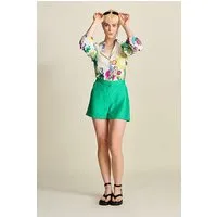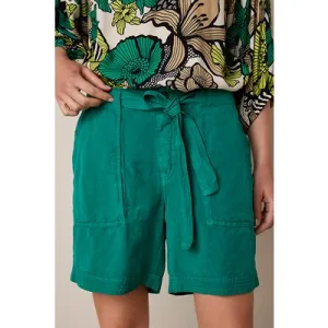 Summum Woman Loose Fit Shorts Flowy Linen Tencel Tropical Green