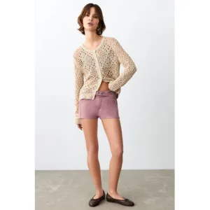 WE Fashion straight gestreepte casual short donkerblauw gebreid