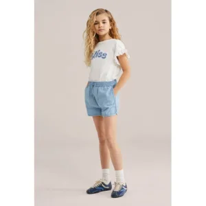 Daily7 denim straight regular waist short met hartjes light blue denim