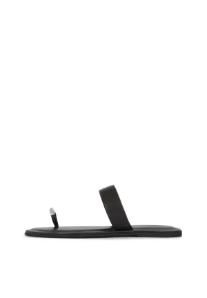 Sacha leren teenslippers zwart