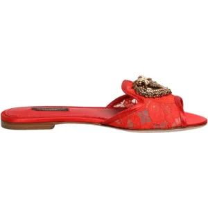 Dolce & Gabbana Rode Devotie Kanten Instap Sandalen Schoenen
