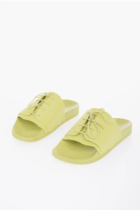 Rubberen slippers met veterdetail in groen