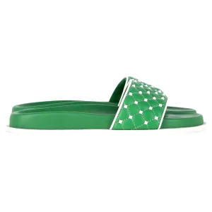Valentino Garavani Rockstud Gequilte Slippers In Groene Leer