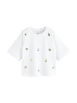 Desigual Lilo & Stitch T-shirt wit met glitter