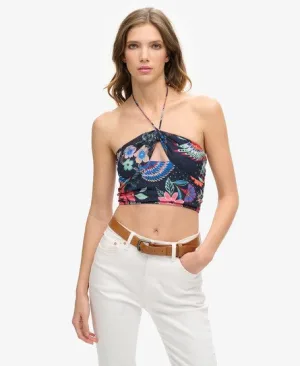 Superdry Vrouwen Kort Geweven Topje met Uitsnijdingen Donkerblauw