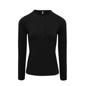 Premier Dames/Dames Long John Effen Rol Mouw T-shirt (Zwart)
