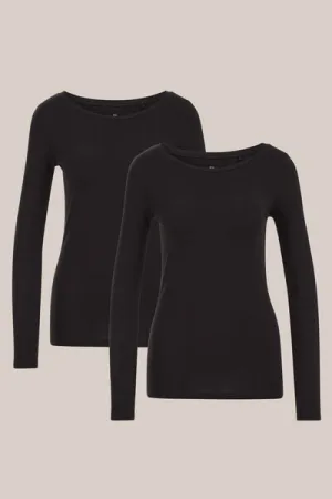WE Fashion – Dames T-shirt van katoenmix, 2-pack – Zwart – Katoen –