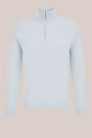WE Fashion – Heren Regular fit trui met rits – Regular fit – IJsblauw – Katoen –