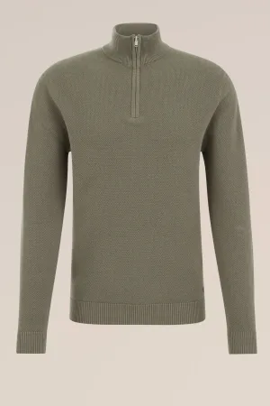 WE Fashion – Heren Slim fit trui met rits – Slim Fit – Legergroen – Katoen –