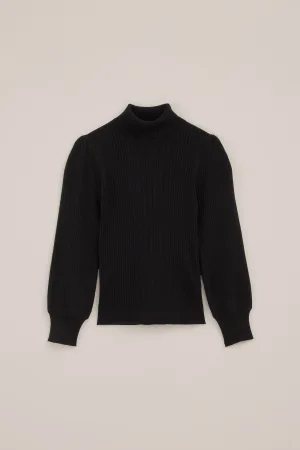 WE Fashion – Meisjes coltrui met van ribstof – Regular fit – Zwart – Viscose –